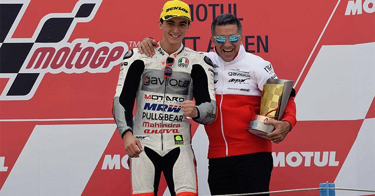 El Gaviota Aspar Mahindra ha subido a lo más alto del podio con Pecco Bagnaia, logrando de este modo la primera victoria del conjunto valenciano en la categoría pequeña desde que el alemán Jonas Folger venciera el gran premio de la República Checa en 2012.