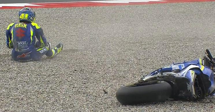 Sin embargo, el piloto de Granollers sólo ha podido dar cuatro vueltas en la FP2. A la salida de la rapidísima curva 8, Aleix ha sufrido una caída tras perder el control de su GSX-RR, llevándose un buen revolcón por el suelo.