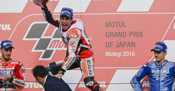 A sus 23 años, Marc Márquez ha conseguido hoy en Japón su tercer título de MotoGP, el quinto campeonato mundial que se apunta en los últimos siete años, un resultado histórico en el Mundial de Motociclismo.