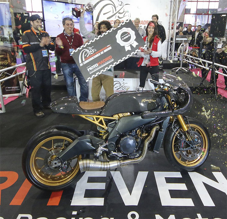 El constructor onubense se presentó al concurso en la categoría Café Racer con una motocicleta, denominada Pili, fabricada con la base de una Aprilia RSV 1000. Las puntuaciones independientes de los miembros del jurado en materias como ingeniería, terminaciones, desarrollo, funcionalidad, fabricación propia de componentes y pintura, le otorgaron a esta montura el primer premio de su categoría y posteriormente, el premio absoluto al Mejor Constructor/Mejor Motocicleta.