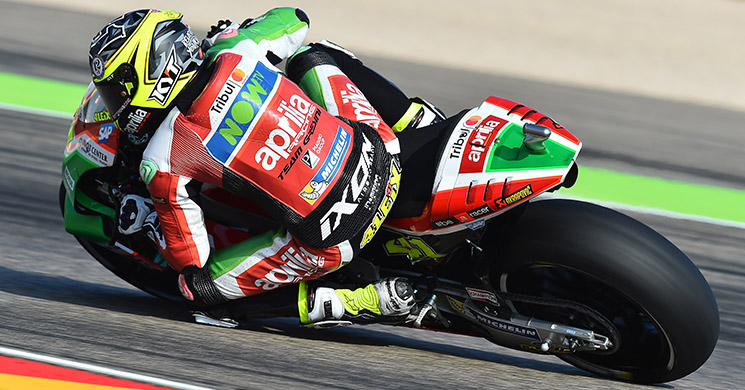 El punto débil del prototipo de Noale, eso que les impide competir de tú a tú con Honda, Yamaha y Ducati es la potencia, de acuerdo con el #41. "Lo hemos mejorado mucho durante este año, pero todavía es la moto más lenta. Estamos más cerca de Honda y Yamaha, y estamos felices con las mejoras, pero todavía es el gran punto a mejorar", explica.