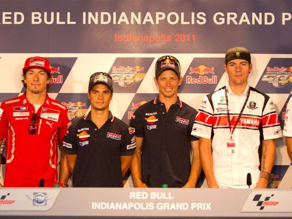 El famoso Indianapolis Motor Speedway acoge este fin de semana el Gran Premio Red Bull de Indianápolis y antes del inicio de la acción un quinteto de estrellas de la categoría reina se reunió en la sala de prensa del trazado y avanzó sus expectativas ante la 12ª prueba del Campeonato del Mundo de MotoGP 2011.