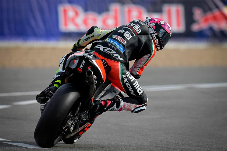 Dos accidentes y dos motivos distintos: “Es una lástima los dos accidentes seguidos. Esta mañana he sido muy competitivo con los neumáticos usados en ritmo de carrera, mientras que por la tarde he tenido dos accidentes. El primero fue culpa mía, ya que perdí la delantera y termine en el suelo, mientras que en el segundo el neumático estaba usado. Pese a eso, estoy satisfecho, aunque hemos luchado en la clasificación, puesto que el límite de la Aprilia no se encuentra en sacarle el máximo partido al neumático nuevo”.