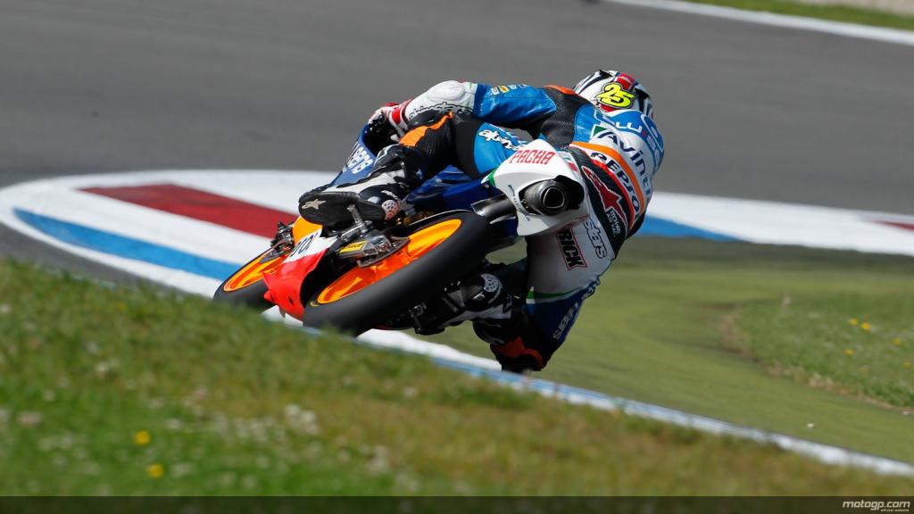 Octavo ha sido otro piloto de Ducati, el español Héctor Barberá, seguido por Casey Stoner, noveno, que hoy sólo ha podido completar ocho vueltas al circuito de Assen al encontrar distintos problemas en sus dos motos. En el grupo de las CRT, Aleix Espargaró ha cerrado esta primera jornada de libres con el mejor tiempo (1'36.615), dos décimas más rápido que su compañero de equipo Randy De Puniet.