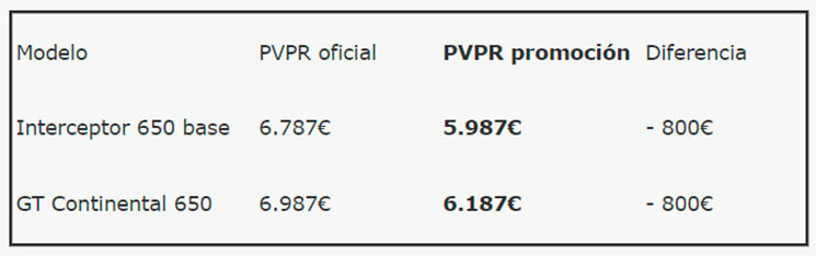 Royal Enfield anuncia una nueva promoción comercial limitada en cinco de sus modelos actuales a través de su red comercial de Vendedores Autorizados. Estas promociones contemplan una reducción de 600 € en el PVPR para los modelos Classic 350, Meteor 350 y Scram 411, y de 800€ para la Interceptor 650 y GT Continental 650.