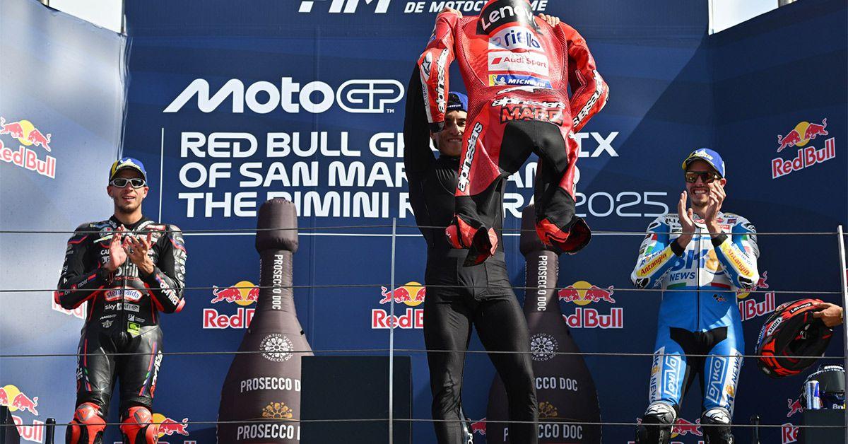 Para Suppo, el estreno de Marc con la Ducati en 2024 ya ofreció "las primeras señales" de lo que estaba por venir. El catalán logró tres victorias dominicales sobre la moto satélite del equipo de Nadia Padovani, un hito que para Suppo es todavía mayor sabiendo que la GP24 era una moto netamente superior a la versión 2023 que llevaba entonces Marc en Gresini: "Un salto tan grande no era fácil de imaginar desde fuera, sin conocer las diferencias entre las motos. También es cierto que en 2024 sumó 392 puntos, y la segunda mejor GP23 del campeonato fue la de su hermano con 173".