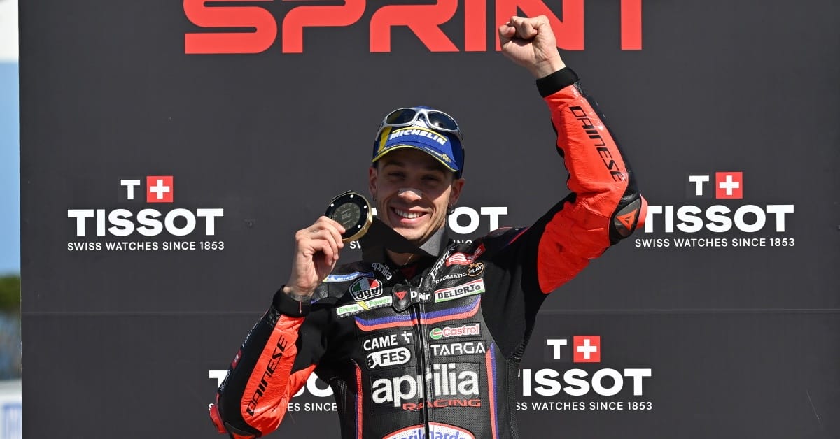 Una de las imágenes de la carrera al sprint ha sido protagonizada por el compañero de equipo de Jorge Martín al llevarse una gaviota en la vuelta de calentamiento sin provocar daños en la RS-GP: “Lo vi después de la bandera a cuadros. Empezamos juntos la vuelta de calentamiento (risas). Me dio pena, pero afortunadamente no se rompió nada de la moto. Me asusté, porque lo vi al final de la carrera y era muy grande. Lo único que pude hacer fue mantener la concentración”.