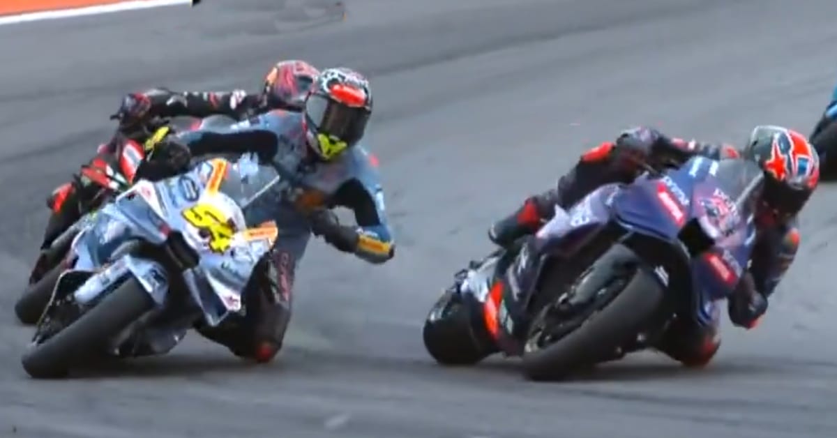 We're still trying to work out how @Aldeguer54 managed to stay onboard 🤯@jackmilleraus has to drop 3 positions for causing this contact ⚠️#ValenciaGP 🏁 pic.twitter.com/uaGtMtQ3G4