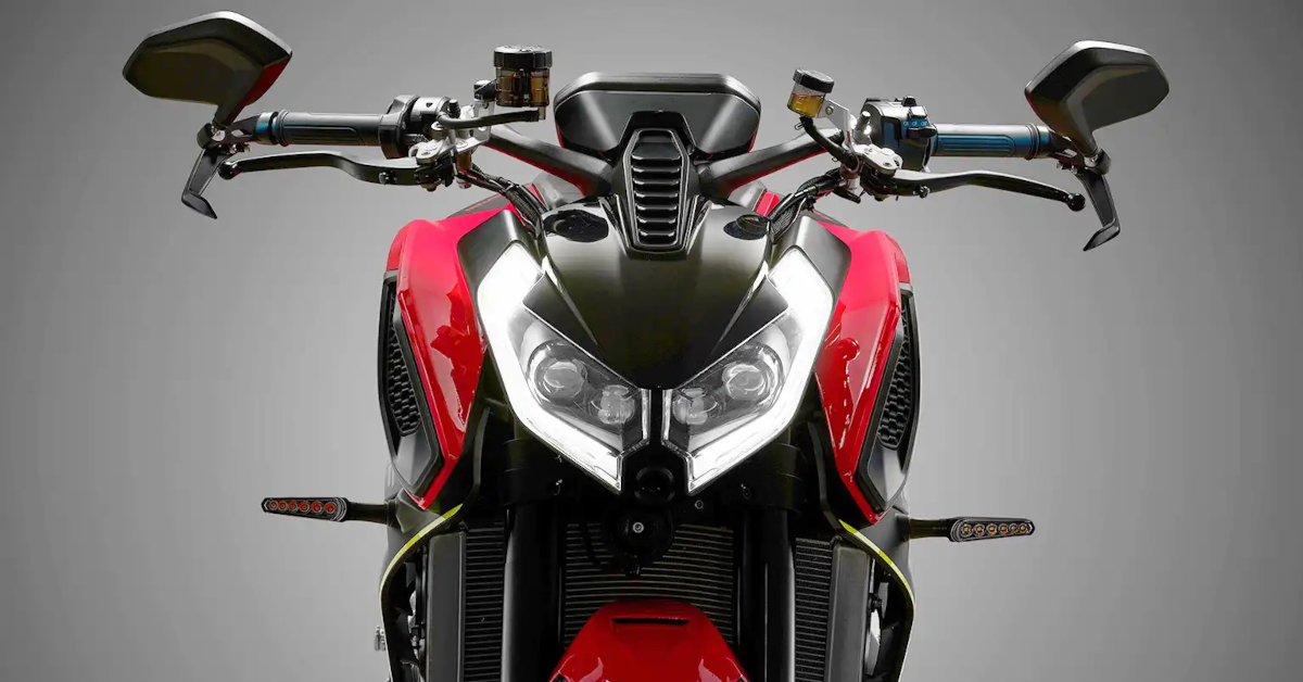 QJ, sin embargo, no se ha limitado a replicar un diseño conocido. El enfoque visual es más agresivo, más rectilíneo, como si hubieran cogido la filosofía de la Brutale y la hubieran pasado por un filtro más afilado. El depósito incorpora tomas laterales que parecen cuchillas, las tapas laterales marcan aristas más duras de lo habitual y la zaga queda muy compacta gracias al doble escape elevado bajo el asiento. Es una fórmula familiar, sí, pero reinterpretada para destacar entre las naked asiáticas de gran cilindrada, un segmento donde QJ quiere entrar pisando fuerte.