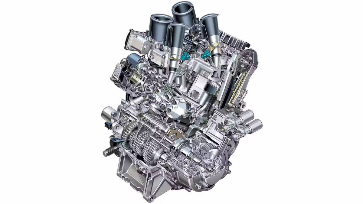 Visualmente, el motor que aparece en las patentes es claramente más compacto. El cárter, la transmisión y la carrocería asociada parecen más pequeños, probablemente gracias a ese nuevo sistema de lubricación interna y a depósitos de aceite localizados para componentes concretos. No es un V4 descomunal pensado solo para lucirse, sino un motor diseñado para encajar en una gama realista.