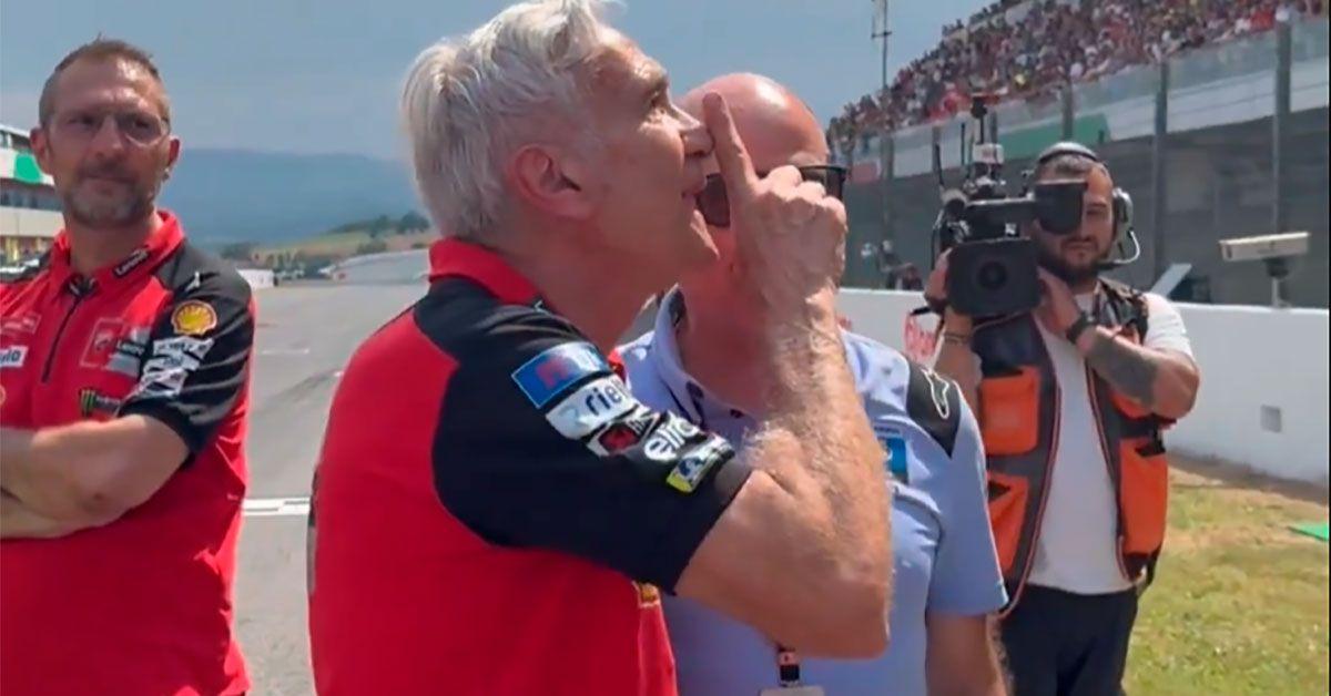Davide Tardozzi mandando callar a los 'Tiffosi' que abucheaban a Marc Márquez tras ganar la sprint en Mugello 🤫#ItalianGP 🇮🇹 #MotoGP 🏁 pic.twitter.com/ATTxd7MHOj