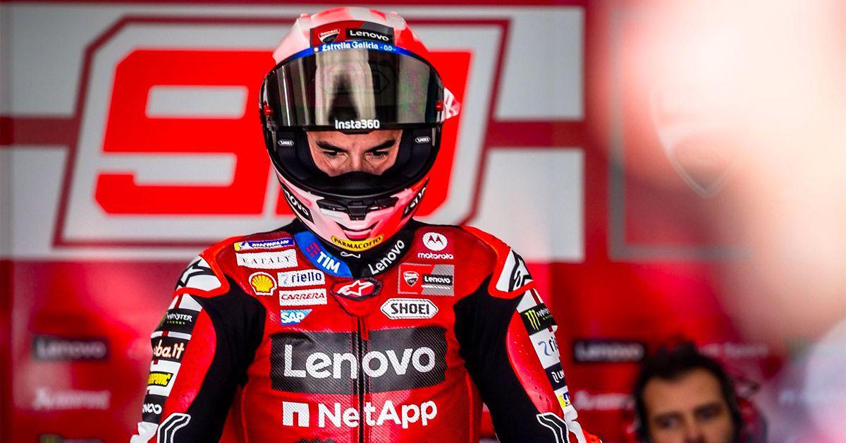 Ducati le dio total libertad para que se tomara las cosas con calma antes de empezar con el trabajo técnico. Marc fue muy directo con los ingenieros desde el box: "No me sentía todavía al 100% y he pedido a Ducati tiempo esta mañana para recuperar las sensaciones sobre la moto y de mi cuerpo". Por la tarde, cuando ya se sintió más cómodo, empezó a probar piezas, aunque reconoce que al estar los motores congelados, el carácter de la Desmosedici no ha cambiado drásticamente.