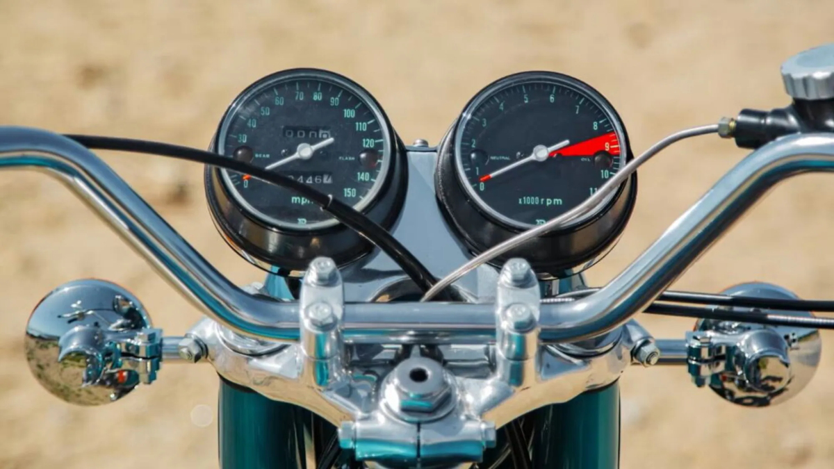 Según la documentación que acompaña a la unidad y el trabajo de verificación realizado por su anterior propietario, se trata del ejemplar que Soichiro Honda decidió enviar personalmente a American Honda en octubre de 1968. No para exhibirla, sino para usarla. Con ella debían hacer pruebas de velocidad máxima, consumo y kilometraje real en carreteras abiertas de Nevada. Lo que viene siendo una moto de laboratorio, pero rodando a fondo.