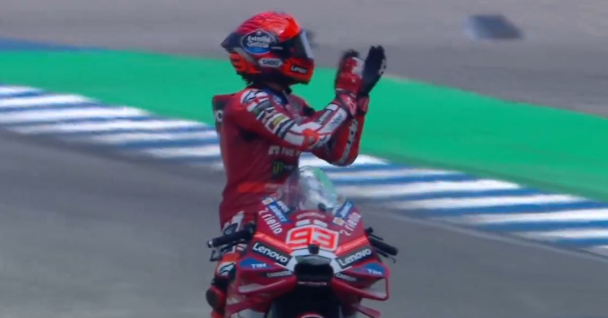 De hecho, tirando de mofa, en un vídeo publicado por DAZN, se puede ver como el 93, encima de la Ducati, aplaude irónicamente hacia el edificio donde está situada Dirección de Carrera. Una manera inequívoca de mostrar su disconformidad de una manera discreta y sarcástica: