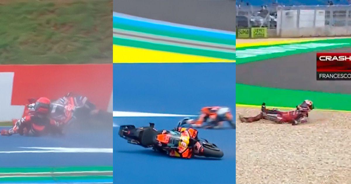 Marc Márquez fue el primero en dar un aviso serio. El de Cervera marcó un tiempo de 1:17,491 que lo puso líder, pero la tranquilidad duró un suspiro. Casi al momento, Pedro Acosta sufría una caída muy fea yendo muy rápido. Por suerte, el murciano se levantó por su propio pie sin daños físicos, aunque su KTM no corrió la misma suerte.