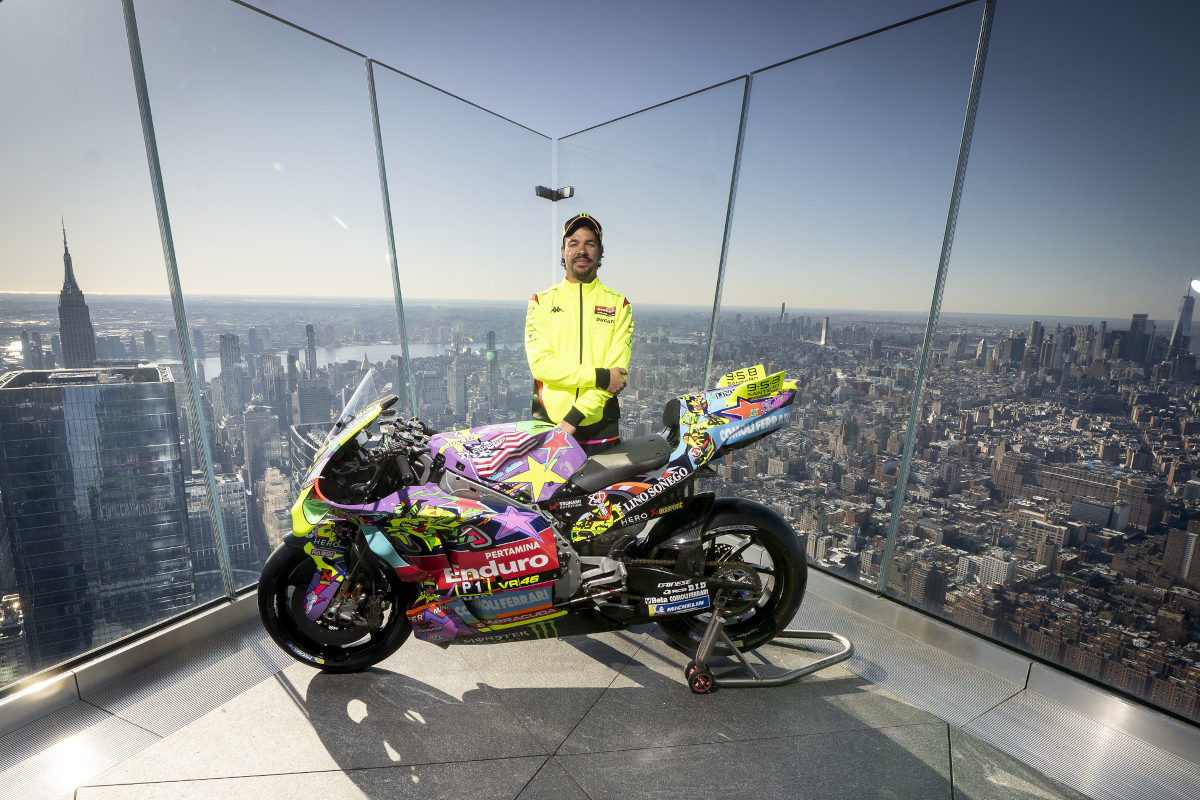 El Pertamina Enduro VR46 Racing Team ha decidido jugar fuerte antes del Gran Premio de las Américas. Y no lo ha hecho en cualquier sitio... La presentación de su decoración especial para Austin se llevó a cabo en lo alto de Nueva York, en el espectacular mirador Edge, con el skyline de Manhattan como telón de fondo y una Ducati que no dejó indiferente a nadie.