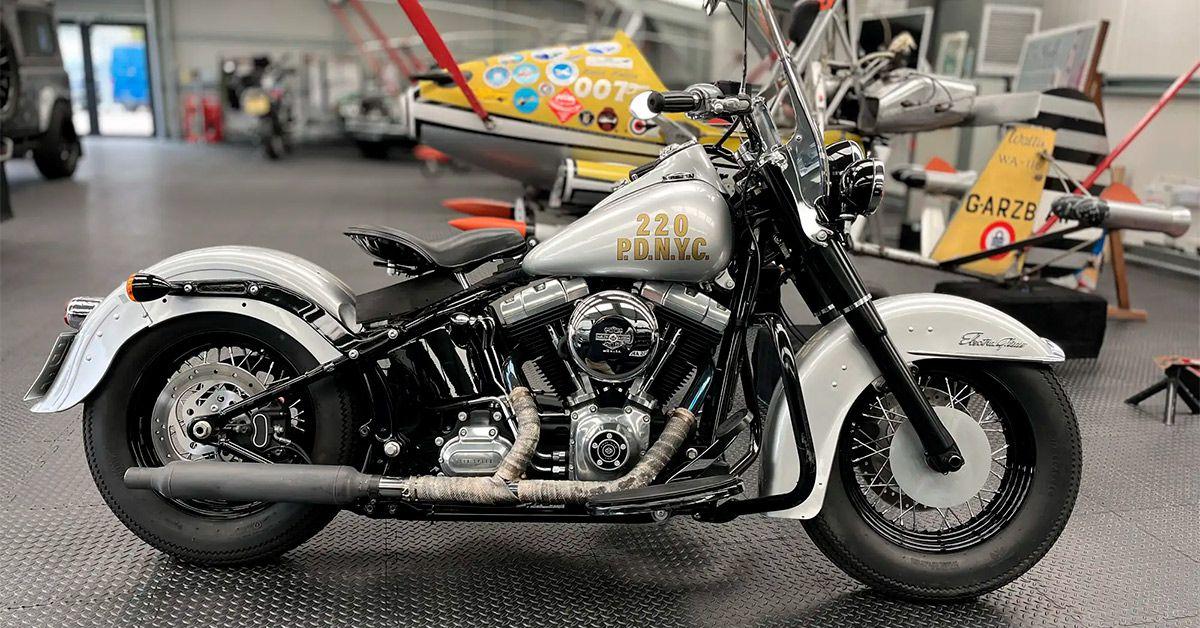 Lo más llamativo de esta moto es su disfraz. Aunque por dentro es una Softail moderna, Pinewood Studios la compró y la modificó por completo para que pareciera una Electra Glide de la Policía de Nueva York de los años 60. El trabajo de personalización es tan bueno que cuesta creer que debajo de ese aspecto de patrullera clásica se esconda una mecánica mucho más actual y fiable que la de hace seis décadas.