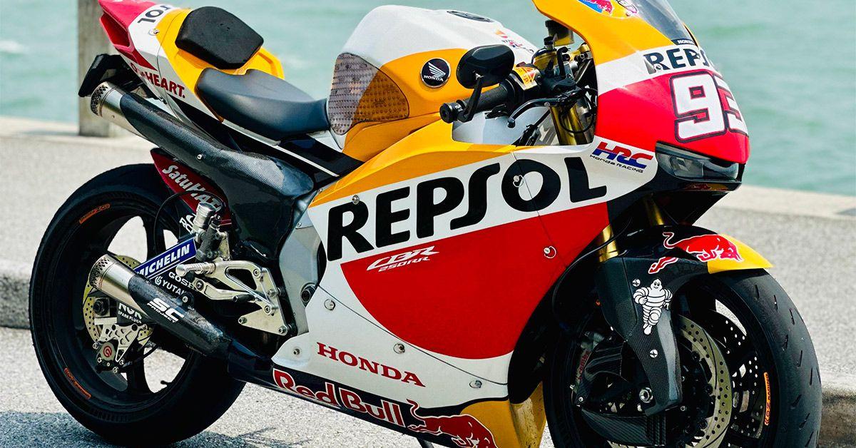 El dueño de esta joya, conocido en X como Mataken707, ha puesto todo su empeño en que su moto parezca recién salida del box de HRC. Su creación tiene nombre propio. Él mismo dice en sus redes: "¡Monto una CBR250RR MC51 REPSOL Honda MotoGP Special Edition en Okinawa!". Y no le falta razón, porque el nivel de detalle en los carenados con los colores de Repsol y el número 93 en el frontal es espectacular.