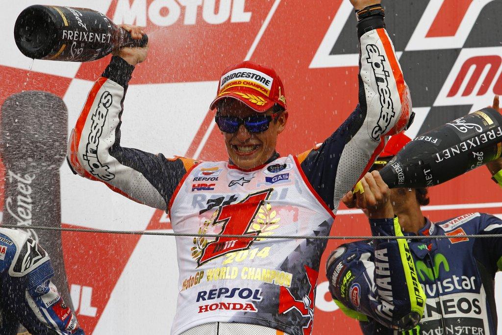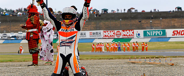 El año 2014 va a ser difícil de olvidar para Marc Márquez. El piloto del equipo Repsol Honda rubricó un inicio de Mundial imparable, encadenando diez triunfos consecutivos e igualando el récord que Mick Doohan firmó en 1997, también con los colores de Repsol. Durante esta temporada, Marc Márquez ha subido 11 veces al primer escalón de un podio que este año ha pisado en 12 ocasiones. Autor de un total de 11 pole postions, Márquez ha podido gestionar con su estilo inconformista una ventaja que le ha llevado al título en Japón.