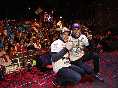 Marc Márquez: "Hoy ha sido un día muy bonito y especial. Este año el tiempo ha acompañado, porque aunque ha hecho un poco de frío, al menos no ha llovido como el año pasado. Ha sido muy emotivo ver a toda la gente del pueblo, caras conocidas y a toda la gente que se ha desplazado hasta aquí para celebrar nuestros dos títulos, el de mi hermano y el mío. Todo esto nos hace ver que lo que hemos conseguido es algo muy grande y nos da mucha motivación de cara al año que viene".