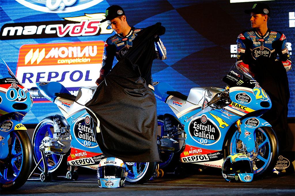 El Centro Creativo Contemporáneo Matadero de Madrid acogió ayer la puesta de largo del Team Estrella Galicia 0,0 en el Mundial de Moto3, donde este año militan Fabio Quartararo y Jorge Navarro. Ambos afrontarán el arranque de la competición de Moto3 al manillar de una Honda NSF250RW, en el que será el debut en el Campeonato del Mundo del joven francés de 15 años y la primera temporada completa del valenciano.