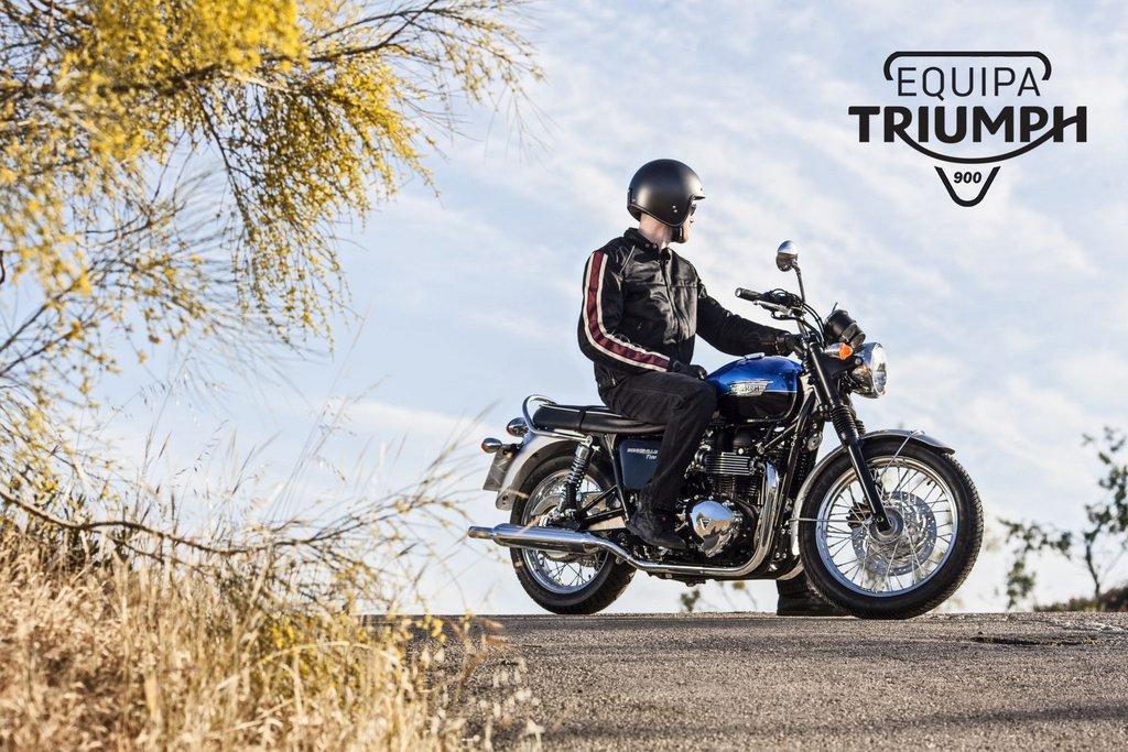 Ya seas un fashion victim que va a la última sobre la moto, luzcas un estilo urbano, encajes más en la moda vintage y café racer o vayas a lo seguro con una apariencia clásica, en Triumph queremos que tu ropa y tu moto reflejen tu personalidad y destilen el carácter único que te define sin desembolsar un euro de más. Gracias a la nueva promoción Equipa - Triumph, aquellos que compren y matriculen antes del 31 de octubre una nueva Bonneville, Bonneville Newchurch, Bonneville T100, Bonneville T100 Black, Bonneville Spirit, Bonneville T214 o Scrambler saldrán del concesionario cargados de equipamiento de ropa y accesorios para su nueva moto por valor de 900 € (PVPR, IVA incluido).