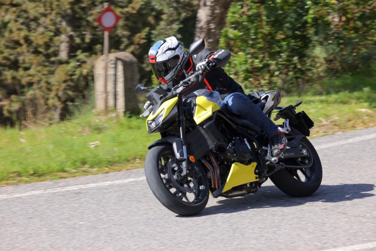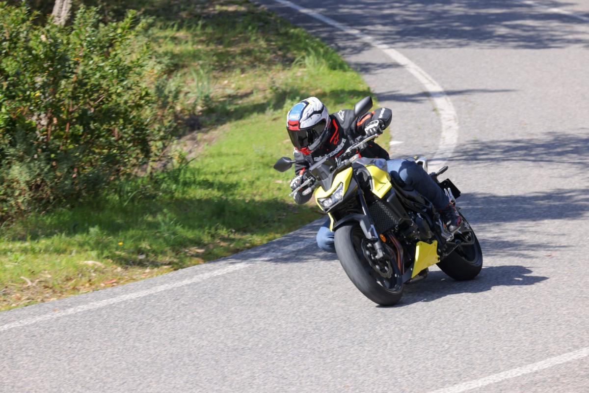 En carretera abierta, la Hornet sigue siendo ese "juguetito" reactivo y juguetón que tanto nos divirtió en su lanzamiento. El motor bicilíndrico de 92 CV y 75 Nm empuja con una contundencia magnífica. Con el E-Clutch, las transiciones entre marchas son instantáneas y homogéneas, sin importar a qué revoluciones vayas. Es como tener un quickshifter perfecto que nunca falla, permitiéndote centrarte exclusivamente en trazar y disfrutar de las curvas.